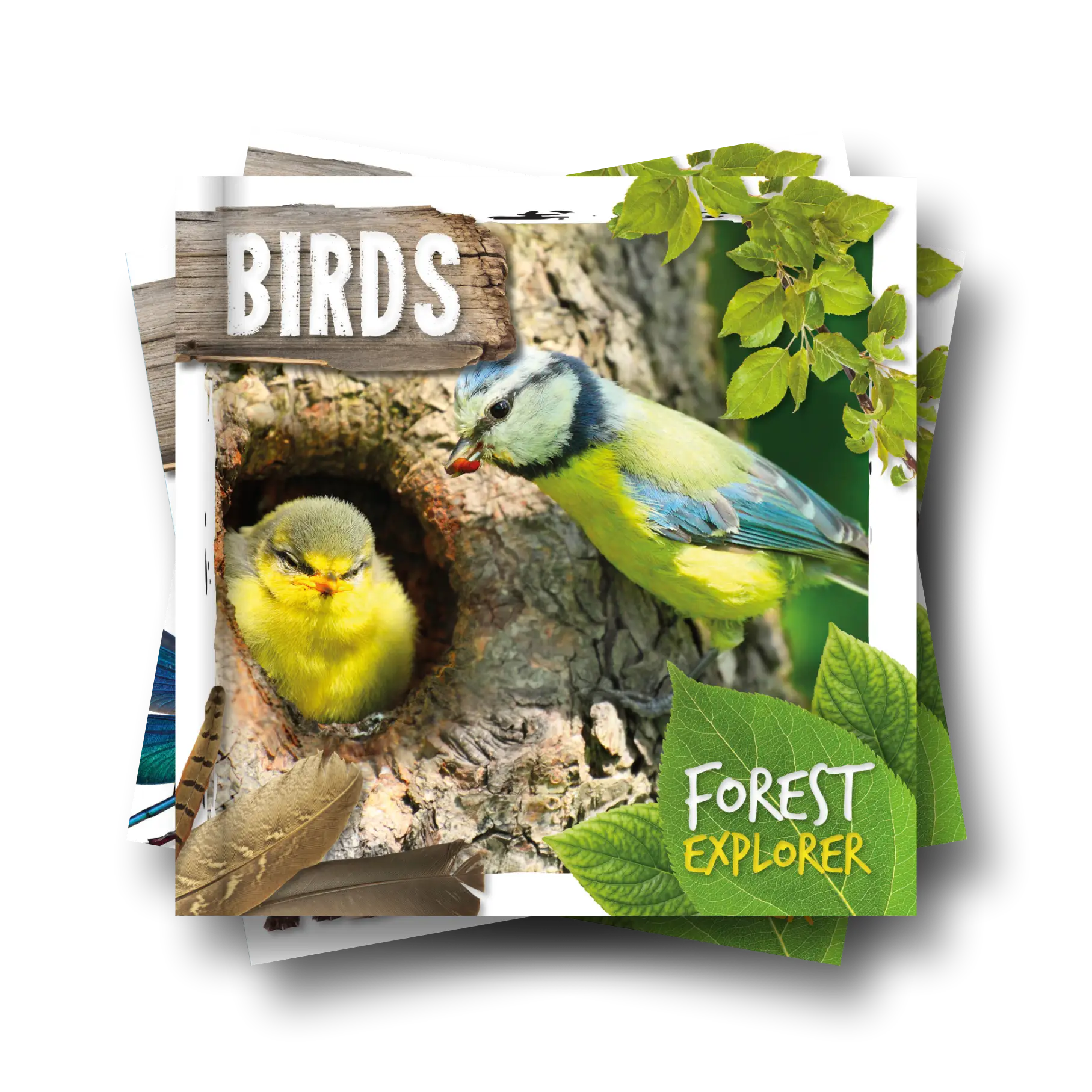 Let’s take a trip into the woods to see what we can see There’s bugs and birds, and animals all living in a tree. Fuzzy moss and splashy streams, mud and sticks and stones. Underneath a rotting log, the mushrooms make their home. So pick up your binoculars and won’t you come with me? Let’s all explore the forest – we’ll be home in time for tea.
