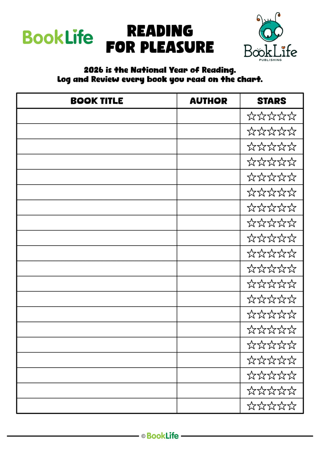 2026 is the National Year of Reading. To help your child or your pupils, we've created a handy chart to help them log and review each book they read.